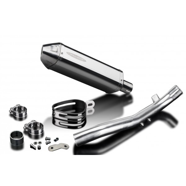 • This set includes - Delkevic silencer with a removable baffle, link pipe, silencer strap, bracket, cap screw, button head screws, washers, nyloc nut, and clamps.