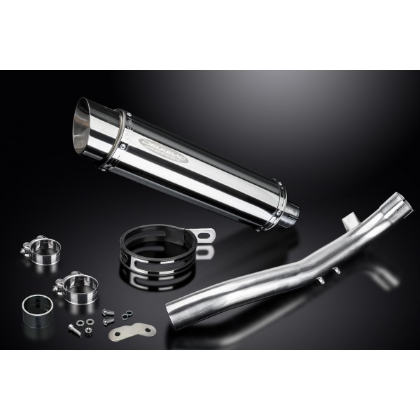 • This set includes - Delkevic silencer with a removable baffle, link pipe, silencer strap, bracket, cap screw, button head screws, washers, nyloc nut, and clamps.