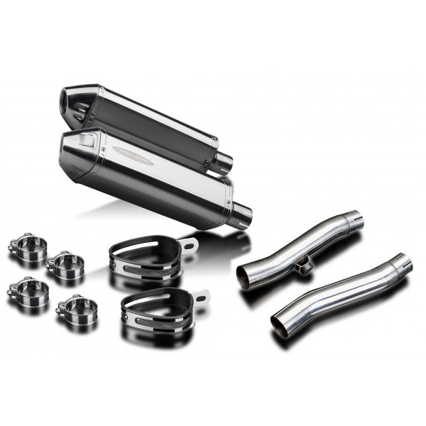 • This set includes - Delkevic silencers with removable baffles, link pipes, straps, and clamps.