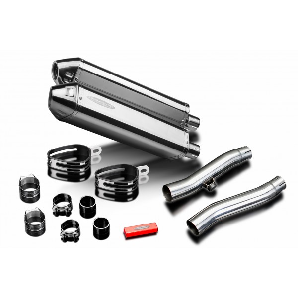 • This set includes - Delkevic silencers with removable baffles, link pipes, straps, and clamps.
