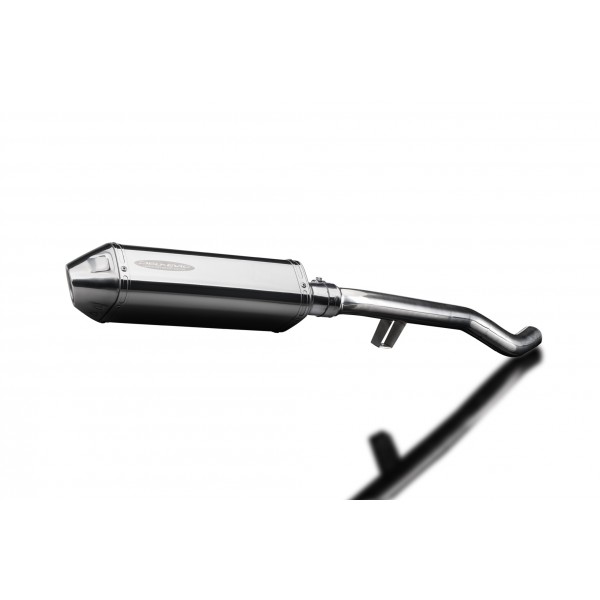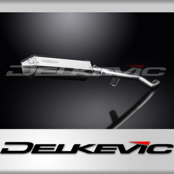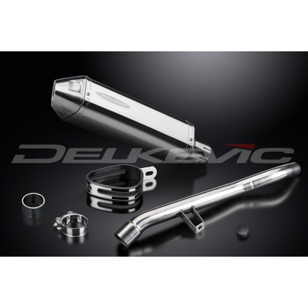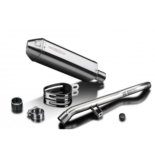 • This set includes - Delkevic silencer with a removable baffle, link pipe, clamps, and strap.
