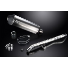 • This set includes - Delkevic silencer with a removable baffle, link pipe, clamps, and strap.