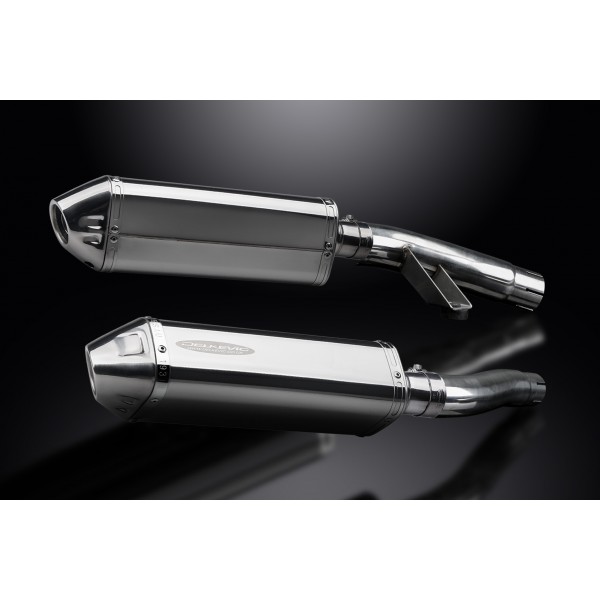 • This set includes - Delkevic silencers with removable baffles, link pipes, straps, gaskets, and clamps.