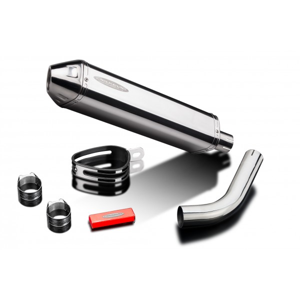 • This set includes - Delkevic silencer with a removable baffle, link pipe, strap, and clamps.