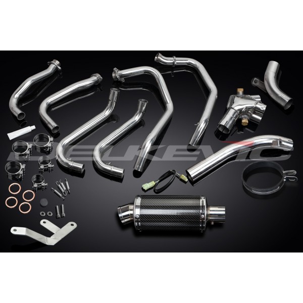 - This set includes - Delkevic down pipes, link pipe, silencer with a removable baffle, strap, clamps, gaskets, stand stop rubber, spring hooks, bracket, and wiring kit.