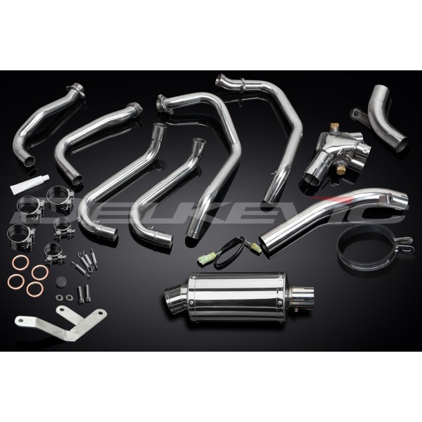 • This set includes - Delkevic down pipes, link pipe, silencer with a removable baffle, strap, clamps, gaskets, stand stop rubber, spring hooks, bracket, and wiring kit.