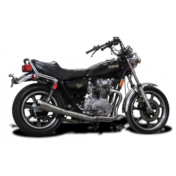 XS650S ALL MODELS 1978-1986 / COMPLETE 2 into 1 EXHAUST SYSTEM CLASSIC REVERSE-CONE SILENCER 304 STA