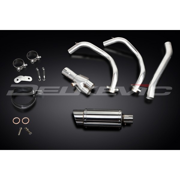 • This set includes - Delkevic down pipes, collector box, link pipe, silencer with a removable baffle, strap, clamps, gaskets, and fixings.