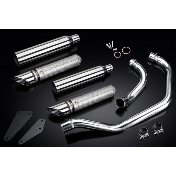 XV535 1987-2003 / COMPLETE SYSTEM 410mm CUSTOM SILENCERS WITH SLASH CUT END 304 STAINLESS STEEL