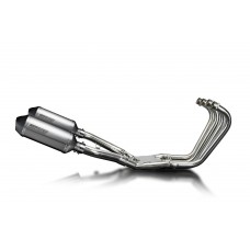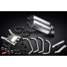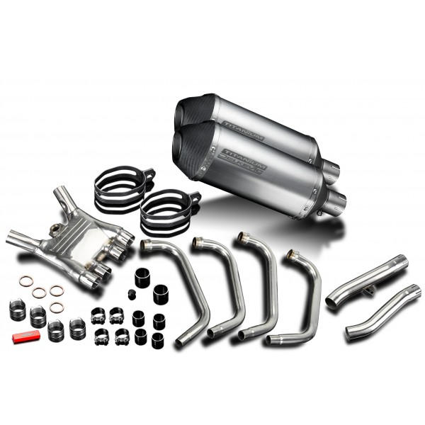 • This set includes - Delkevic down pipes, collector box, link pipes, silencers with removable baffles, straps, clamps, stand stop rubber, and gaskets.