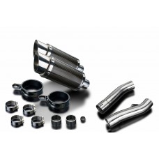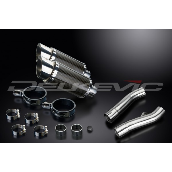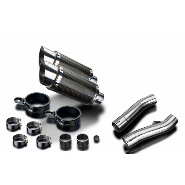 • This set includes - Delkevic silencer with a removable baffle, link pipes, silencer straps, stand stop rubber, gaskets, and clamps.