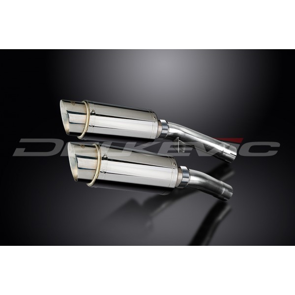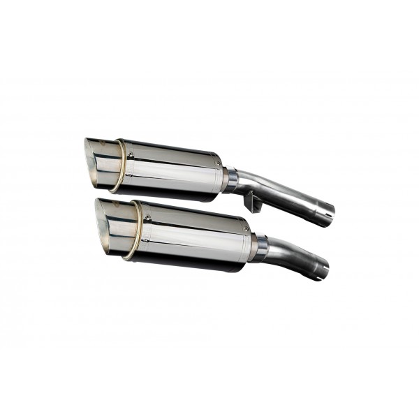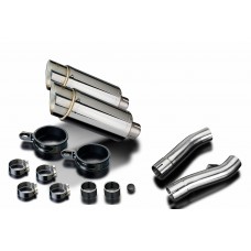• This set includes - Delkevic silencer with a removable baffle, link pipes, silencer straps, stand stop rubber, gaskets, and clamps.