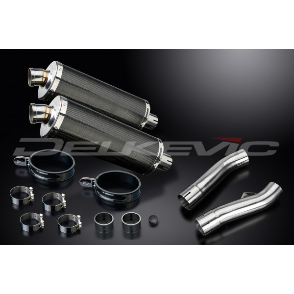 • This set includes - Delkevic silencer with a removable baffle, link pipes, silencer straps, stand stop rubber, gaskets, and clamps.