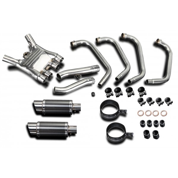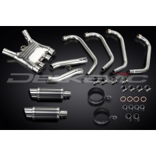 • This set includes - Delkevic down pipes, collector box, link pipes, silencers with removable baffles, straps, clamps, stand stop rubber, and gaskets.