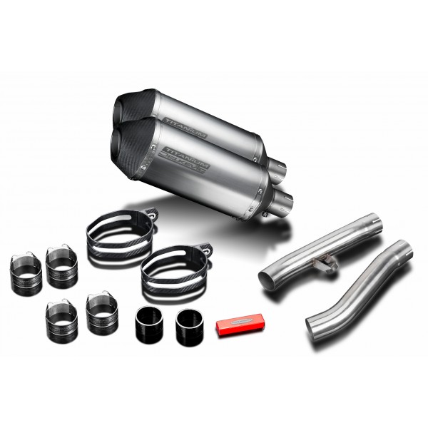 • This set includes - Delkevic silencers with removable baffles, link pipes, straps, clamps, and brackets.
