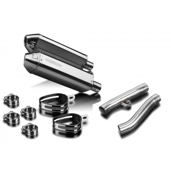 - This set includes - Delkevic silencers with removable baffles, link pipes, straps, clamps, and brackets.