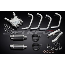 - This set includes - Delkevic down pipes, collector box, link pipes, silencers with removable baffles, straps, clamps, and fixings.