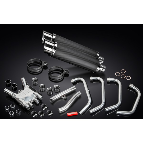 • This set includes - Delkevic down pipes, collector box, link pipes, silencers with removable baffles, straps, clamps, and fixings.