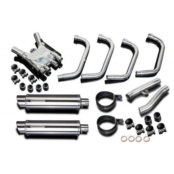 • This set includes - Delkevic down pipes, collector box, link pipes, silencers with removable baffles, straps, clamps, and fixings.