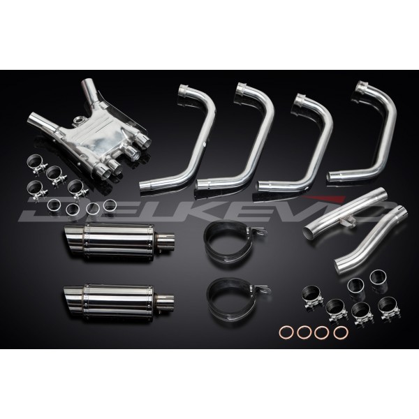 • This set includes - Delkevic down pipes, collector box, link pipes, silencers with removable baffles, straps, clamps, and fixings.