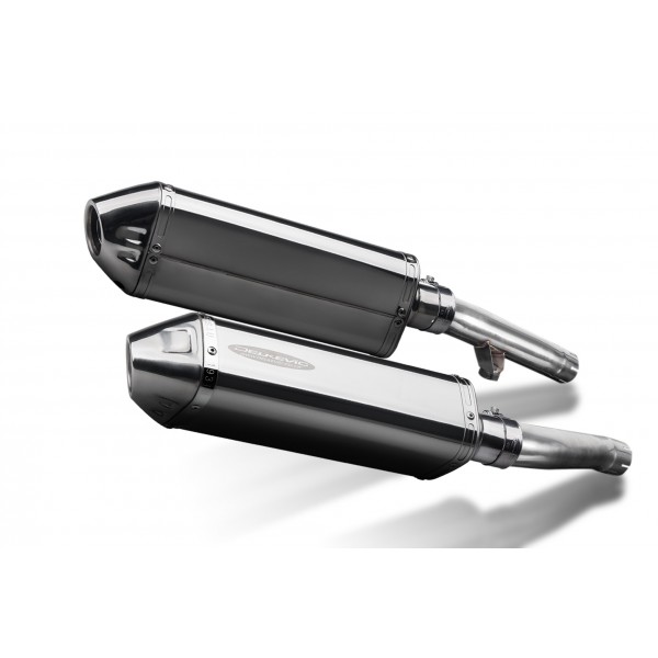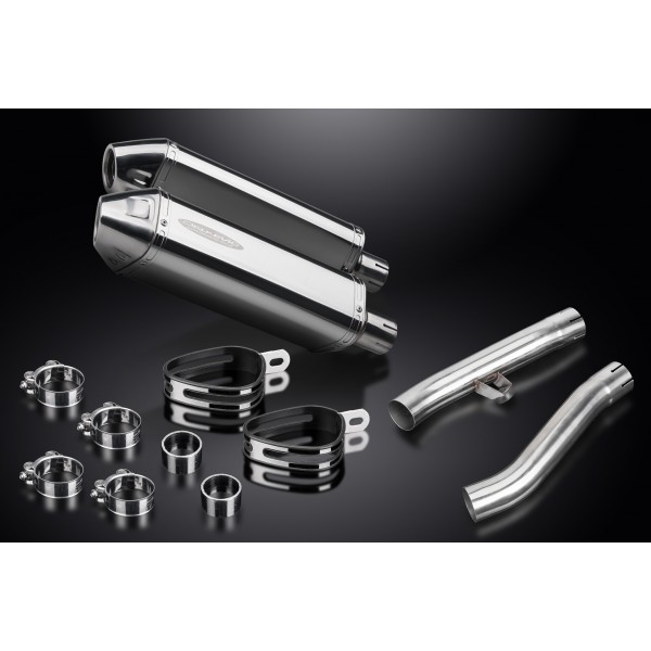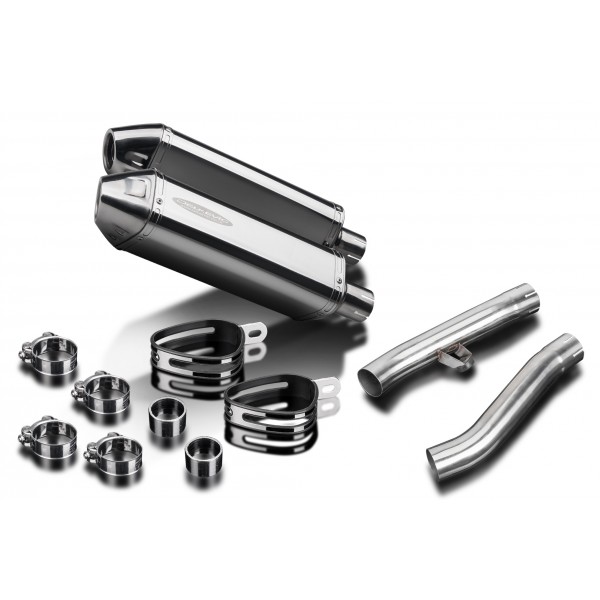 - This set includes - Delkevic silencers with removable baffles, link pipes, straps, clamps, gaskets, nyloc nuts, cap screws, stand stop rubber, washers, and bracket.