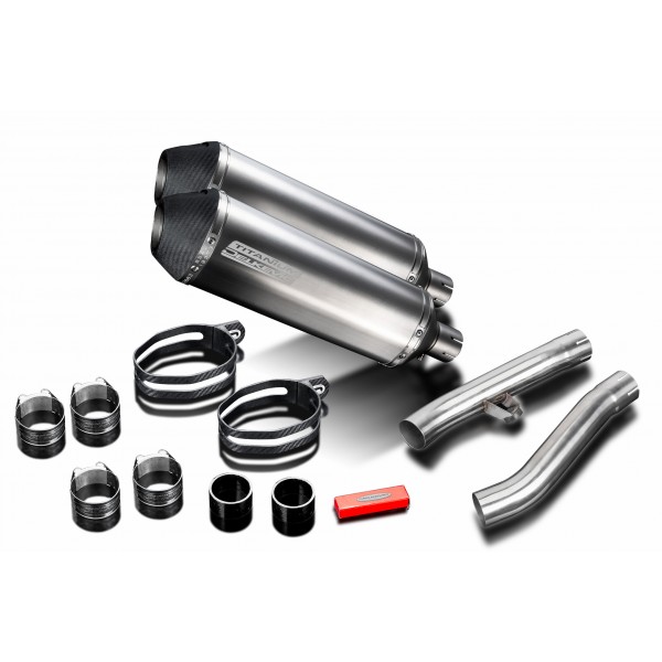 • This set includes - Delkevic silencers with removable baffles, link pipes, straps, clamps, gaskets, nyloc nuts, cap screws, stand stop rubber, washers, and bracket.