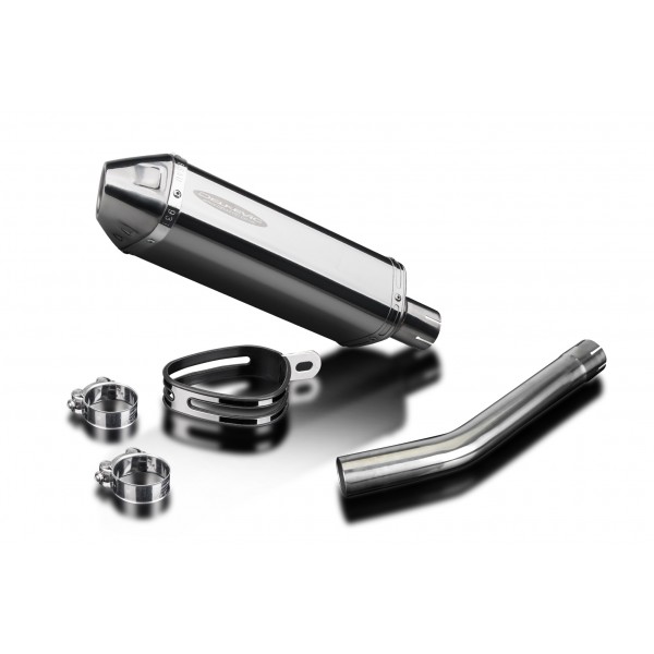 • This set includes - Delkevic silencer with a removable baffle, link pipe, strap, and clamps.