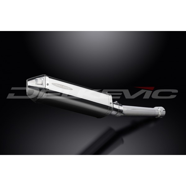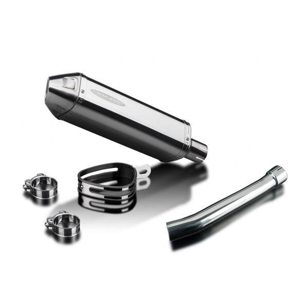 • This set includes - Delkevic silencer with a removable baffle, link pipe, strap, and clamps.