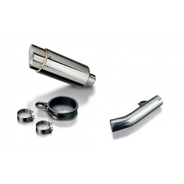 • This set includes - Delkevic silencer with a removable baffle, link pipe, strap, and clamps.