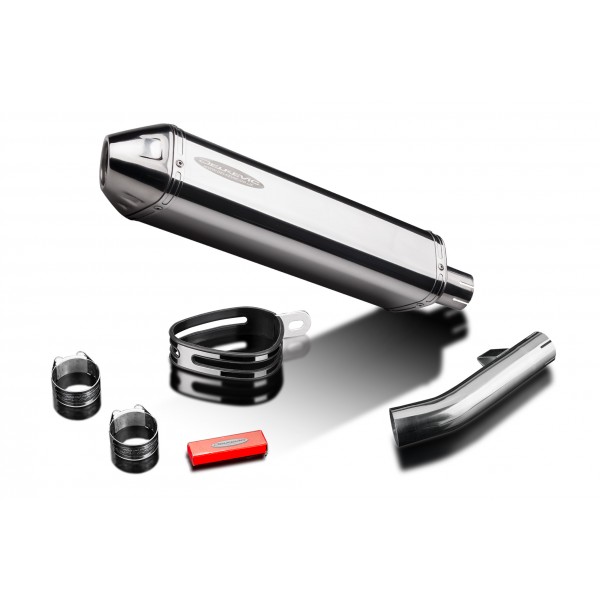 • This set includes - Delkevic silencer with a removable baffle, link pipe, strap, and clamps.