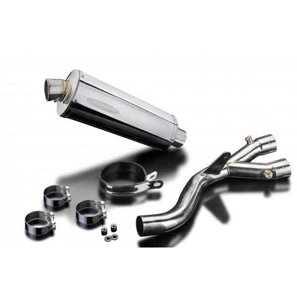 - This set includes - Delkevic silencer with a removable baffle, link pipe, strap, clamps, and fixings.