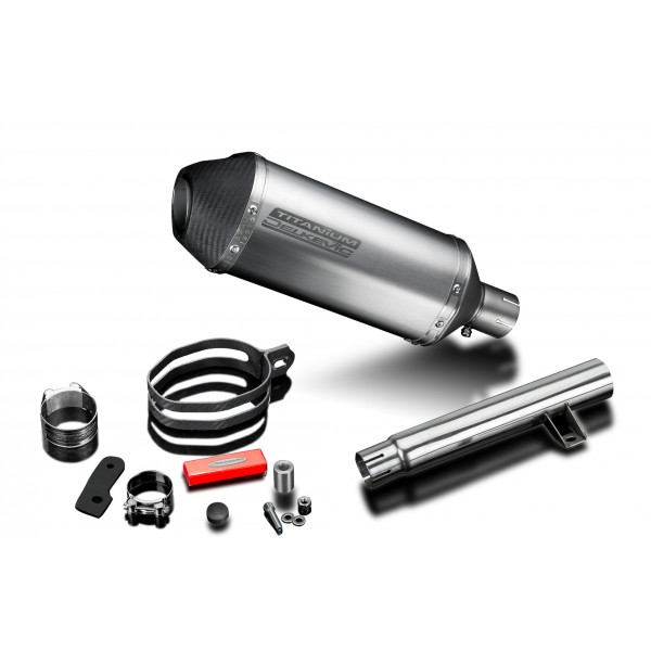 • This set includes - Delkevic silencer with a removable baffle, link pipe, silencer strap, bracket, washers, spacer, nyloc nut, cap screw, stand stop rubber, and clamps.