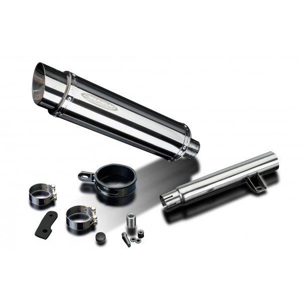 • This set includes - Delkevic silencer with a removable baffle, link pipe, silencer strap, bracket, washers, spacer, nyloc nut, cap screw, stand stop rubber, and clamps.