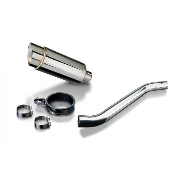 • This set includes - Delkevic silencer with a removable baffle, link pipe, strap, clamps, and gasket.