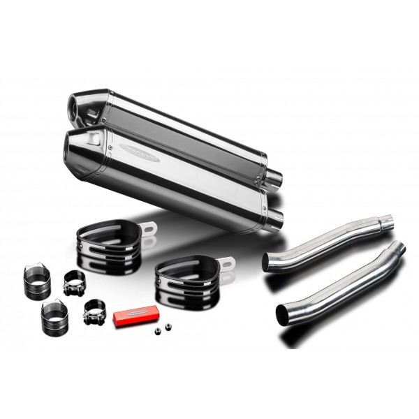 • This set includes - Delkevic silencers with removable baffles, link pipes, clamps, and straps.