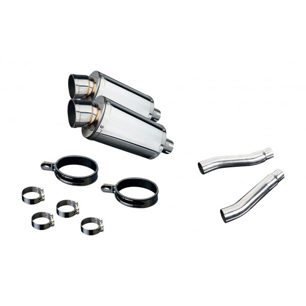 • This set includes - Delkevic silencers with removable baffles, link pipes, clamps, and straps.