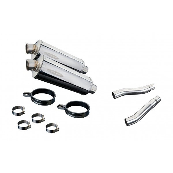 • This set includes - Delkevic silencers with removable baffles, link pipes, clamps, and straps.