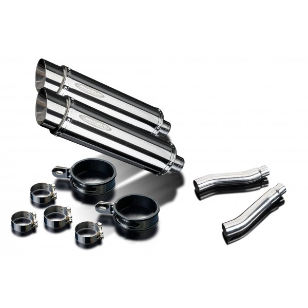 • This set includes - Delkevic silencers with removable baffles, link pipes, clamps, and straps.