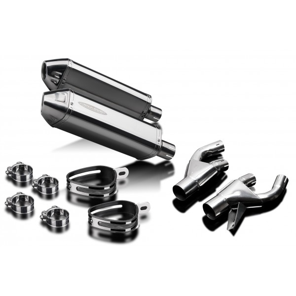 - This set includes - Delkevic silencers with removable baffles, 2-1 link pipes, clamps, and straps.