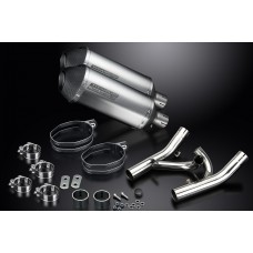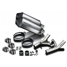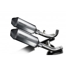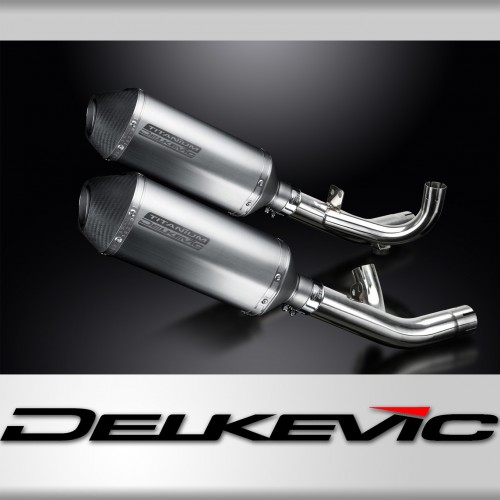 • This set includes - Delkevic silencers with removable baffles, de-cat link pipes, straps, brackets, gaskets, nyloc nuts, stand stop rubber, washers, cap screws, and clamps.