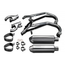 • This set includes - Delkevic down pipes, link pipes, silencers with removable baffles, straps, clamps, and gaskets.