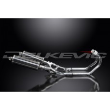 • This set includes - Delkevic down pipes, link pipes, silencers with removable baffles, straps, clamps, and gaskets.