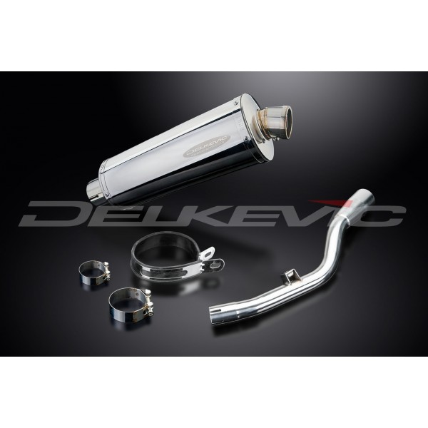 • This set includes - Delkevic silencer with a removable baffle, link pipe, silencer strap, and clamps.