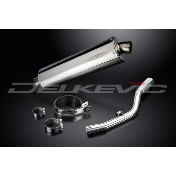 • This set includes - Delkevic silencer with a removable baffle, link pipe, silencer strap, and clamps.