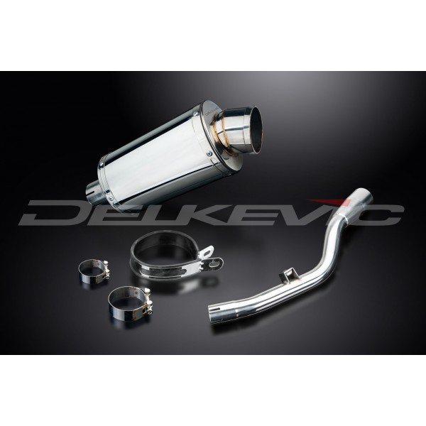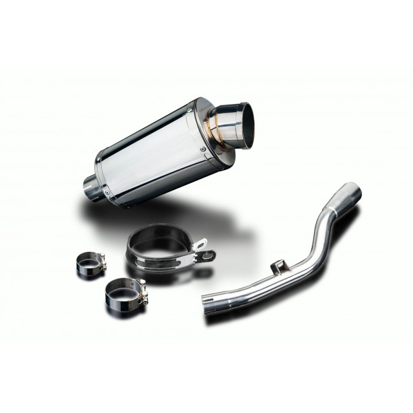• This set includes - Delkevic silencer with a removable baffle, link pipe, silencer strap, and clamps.