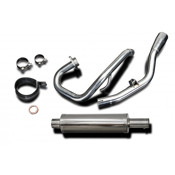 - This set includes - Delkevic De-Cat down pipe, link pipe, Delkevic silencer with a removable baffle, strap, clamps, and gasket.