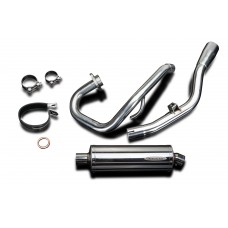 • This set includes - Delkevic De-Cat down pipe, link pipe, Delkevic silencer with a removable baffle, strap, clamps, and gasket.