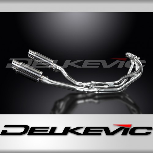 • This set includes - Delkevic down pipes, link pipes, silencers with removable baffles, straps, clamps, gaskets, cap screws, nyloc nuts, brackets, and stand stop rubber.