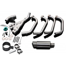 • This set includes - Delkevic down pipes, silencer with a removable baffle, strap, clamps, spring hooks, bracket, cap screws, nyloc nuts, washers, stand stop rubber, and wiring kit.