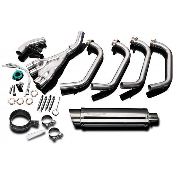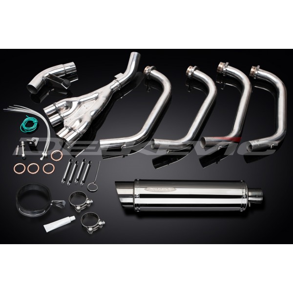 • This set includes - Delkevic down pipes, silencer with a removable baffle, strap, clamps, spring hooks, bracket, cap screws, nyloc nuts, washers, stand stop rubber, and wiring kit.